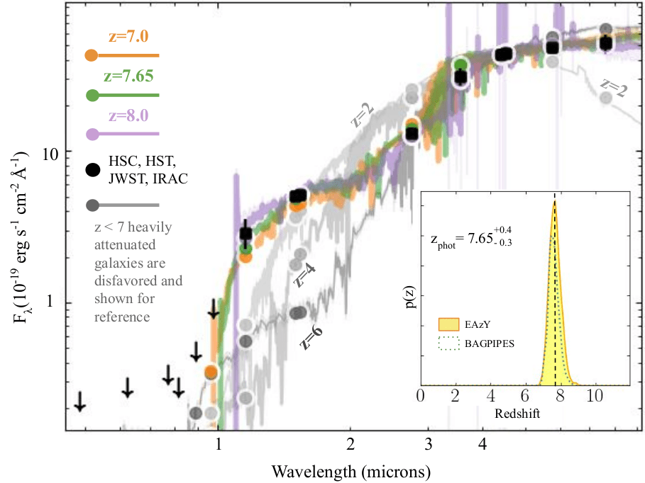 Using a wealth of multi-wavelength information, I identified a powerful, radio-loud (RL), growing supermassive black hole (SMBH) with significant spectral steepening of the radio SED . In conjunction with ALMA, deep ground-based observations, ancillary space-based data, and the unprecedented resolution and sensitivity of JWST, we find no evidence of AGN contribution to the UV/optical/NIR data and thus infer heavy amounts of obscuration. Using the lessons learned from this source, I’ve developed a selection method for finding more of these sources within the COSMOS-Web data-set, and for the first time, we are on the cusp of a less biased view of powerful AGN in the Epoch of Re-Ionization. Check out https://arxiv.org/abs/2308.12823 to learn more!